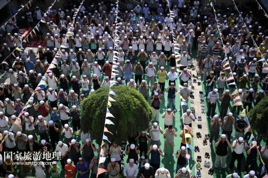 國(guó)家旅游地理 8月8日訊  今天是穆斯林民眾的傳統(tǒng)節(jié)日開(kāi)齋節(jié),寧夏回族自治區(qū)穆斯林群眾參加聚禮,享用美食,走親訪友,歡度開(kāi)齋節(jié)。當(dāng)日,青海省穆斯林群眾迎來(lái)開(kāi)齋節(jié)。來(lái)自青海各地近20萬(wàn)穆斯林群眾來(lái)到西寧市東關(guān)清真大寺參加聚禮?!‘?dāng)日,近3萬(wàn)名各族穆斯林群眾前往新疆最大清真寺——艾提尕爾清真寺做禮拜,喜迎開(kāi)齋節(jié)。當(dāng)日是穆斯林的傳統(tǒng)節(jié)日開(kāi)齋節(jié),郯城縣穆斯林群眾集體慶祝佳節(jié),分享美味佳肴。
