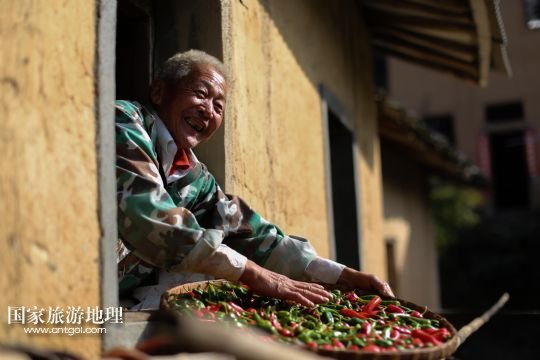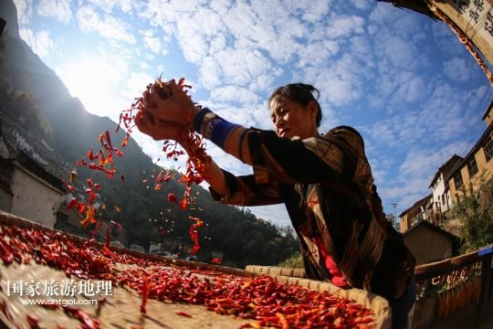 國(guó)家旅游地理 安徽黃山11月11日訊 11月10日,黃山市歙縣霞坑鎮(zhèn)湖山村住戶的屋頂晾曬著各種農(nóng)作物。秋末冬初,安徽省皖南黃山市歙縣鄉(xiāng)村農(nóng)戶種植的玉米、南瓜、辣椒等農(nóng)作物陸續(xù)收獲,古村中房前屋后、庭院屋頂曬滿果實(shí),構(gòu)成一幅幅美麗的“曬秋圖”。 /新華社發(fā)(施廣德 攝)