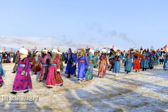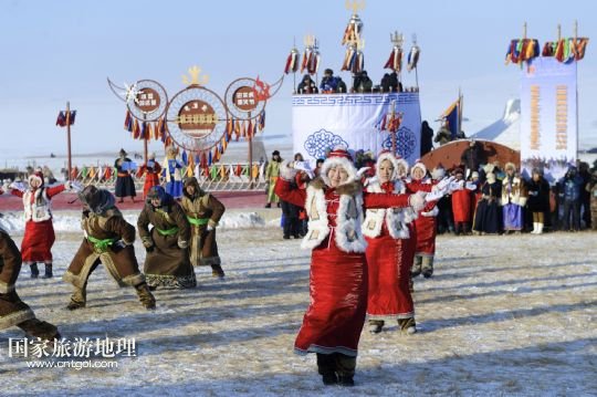 國(guó)家旅游地理 內(nèi)蒙古呼倫貝爾12月23日訊 12月23日,演員在冰雪那達(dá)慕上表演舞蹈。當(dāng)日,內(nèi)蒙古第十四屆冰雪那達(dá)慕暨巴爾虎草原祭火文化節(jié)在內(nèi)蒙古自治區(qū)呼倫貝爾市陳巴爾虎旗開(kāi)幕,吸引了約2萬(wàn)人參加。本屆冰雪那達(dá)慕將冰雪主題與獨(dú)特的民俗風(fēng)情巧妙結(jié)合,活動(dòng)包括祭祀儀式、實(shí)景表演、歌舞演出和傳統(tǒng)體育競(jìng)技等。 /新華社記者 金宇 攝