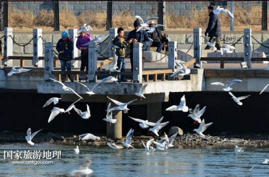 國(guó)家旅游地理 河北秦皇島1月13日訊 1月12日,一群海鷗在秦皇島市海港區(qū)新開(kāi)河入??谔幰捠?。隨著氣溫不斷下降,在秦皇島沿海一線越冬的海鷗開(kāi)始飛到市區(qū)內(nèi)的河道覓食,為冬日里的秦皇島市區(qū)增添了生機(jī)。 /新華社記者楊世堯攝