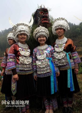 2月16日,幾名苗族姑娘和“芒哥”合影。