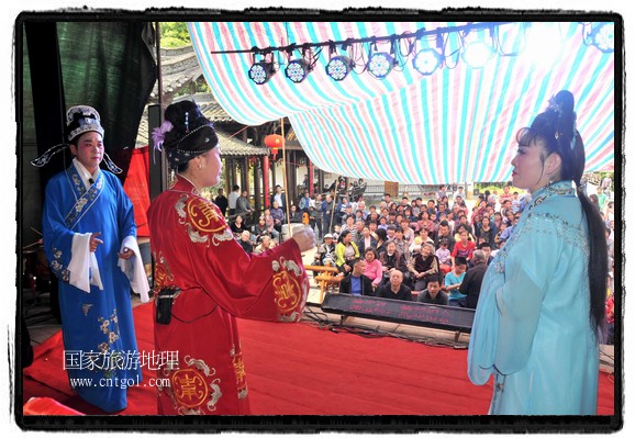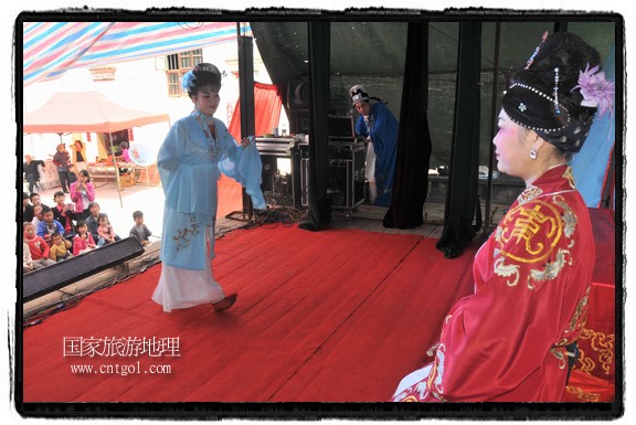 國家旅游地理 江西上饒5月1日訊(特約記者 王國紅攝影報道)5月1日,婺源縣賦春鎮(zhèn)源頭村景區(qū),村民和游客在景區(qū)村口圍觀觀看安徽黃梅戲《婆媳情》。“五一”小長假期間,江西省婺源縣賦春鎮(zhèn)源頭村景區(qū)邀請了安徽黃梅戲劇團在村門口為村民表演輪翻上演黃梅戲,讓老百姓足不出戶就可以享受到豐富的文化大餐,促進了農(nóng)村精神文明建設(shè),受到群眾的廣泛歡迎,讓大家歡快過上“五一”勞動節(jié)。