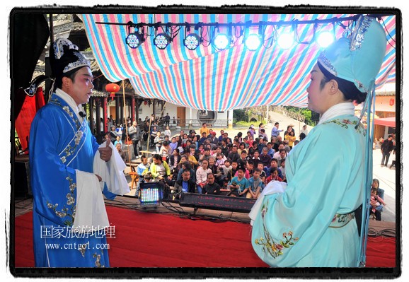 江西省婺源縣賦春鎮(zhèn)源頭村景區(qū)邀請了安徽黃梅戲劇團在村門口為村民表演輪翻上演黃梅戲
