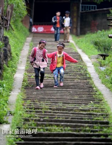 5月14日,高友村的小孩子走在放學路上。