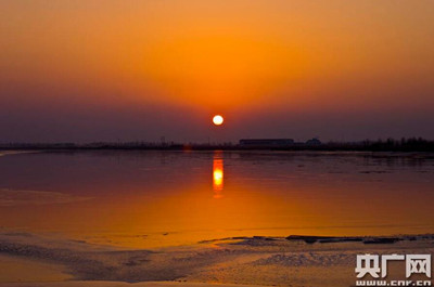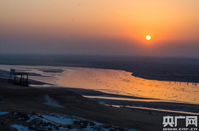 原標題:寒冬黃河寧夏黃沙古渡出現“落日繪流凌”美景